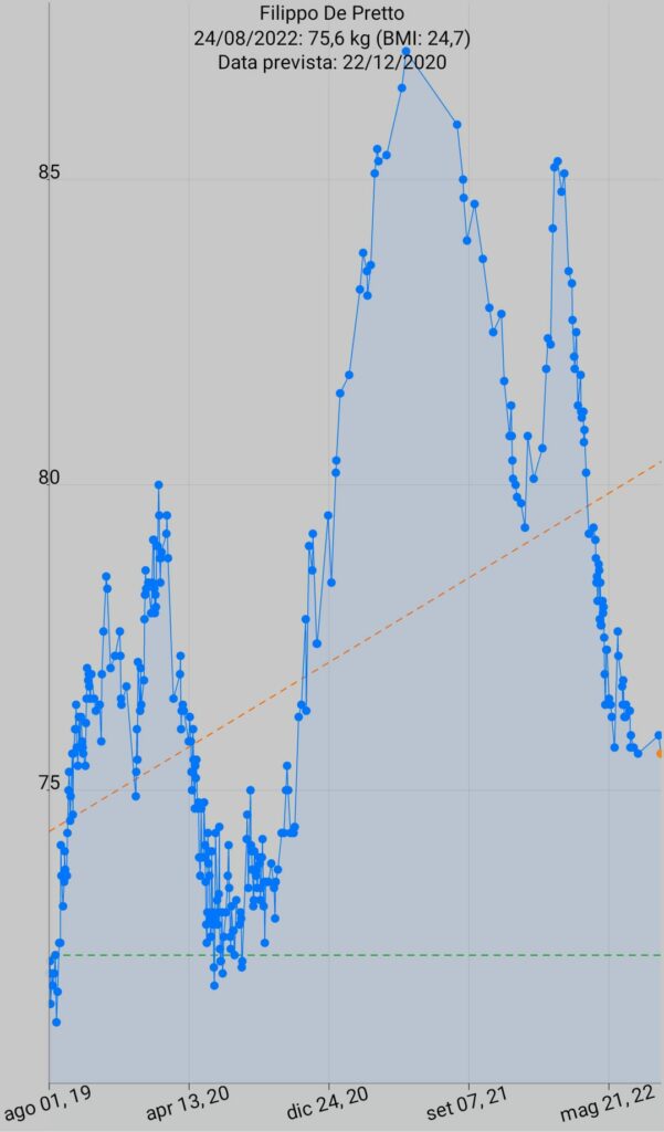 Ora, a netto del fatto che non ho fatto le cose in modo perfetto e millimetrico, puoi vedere chiaramente quando sono andato in massa. Quando invece ho fatto una normocalorica (estate 2020) quando invece sono tornato ancora in massa ma importante e prolungata. Per poi fare un “minicut” di qualche mese e ritornare in una piccola massa per poi decidere di tagliare ancora. E ora starò penso in normacolarica per ancora un mese o due.